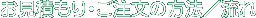 お見積もりの内容でご注文いただく場合はお送りさせていただきました見積もり結果のメールにご注文の場合の記入欄がありますので必要事項をご記入の上返信してください。当社でご注文をお受けしましたらメール、お電話等でご注文の確認をさせていただきます。又、印刷をご希望されている場合は印刷内容につきましてご確認させていただきます。詳しくは"印刷について”をご覧ください。